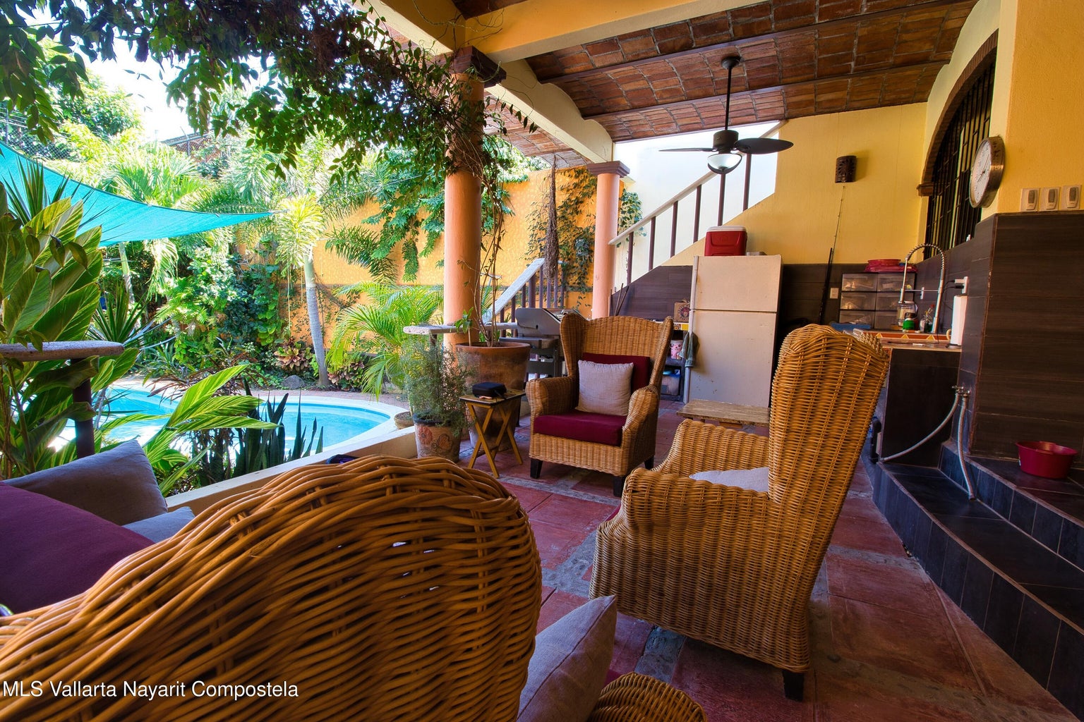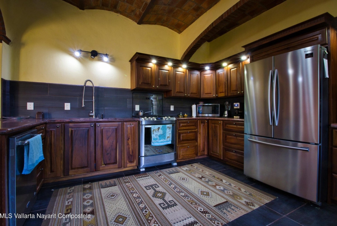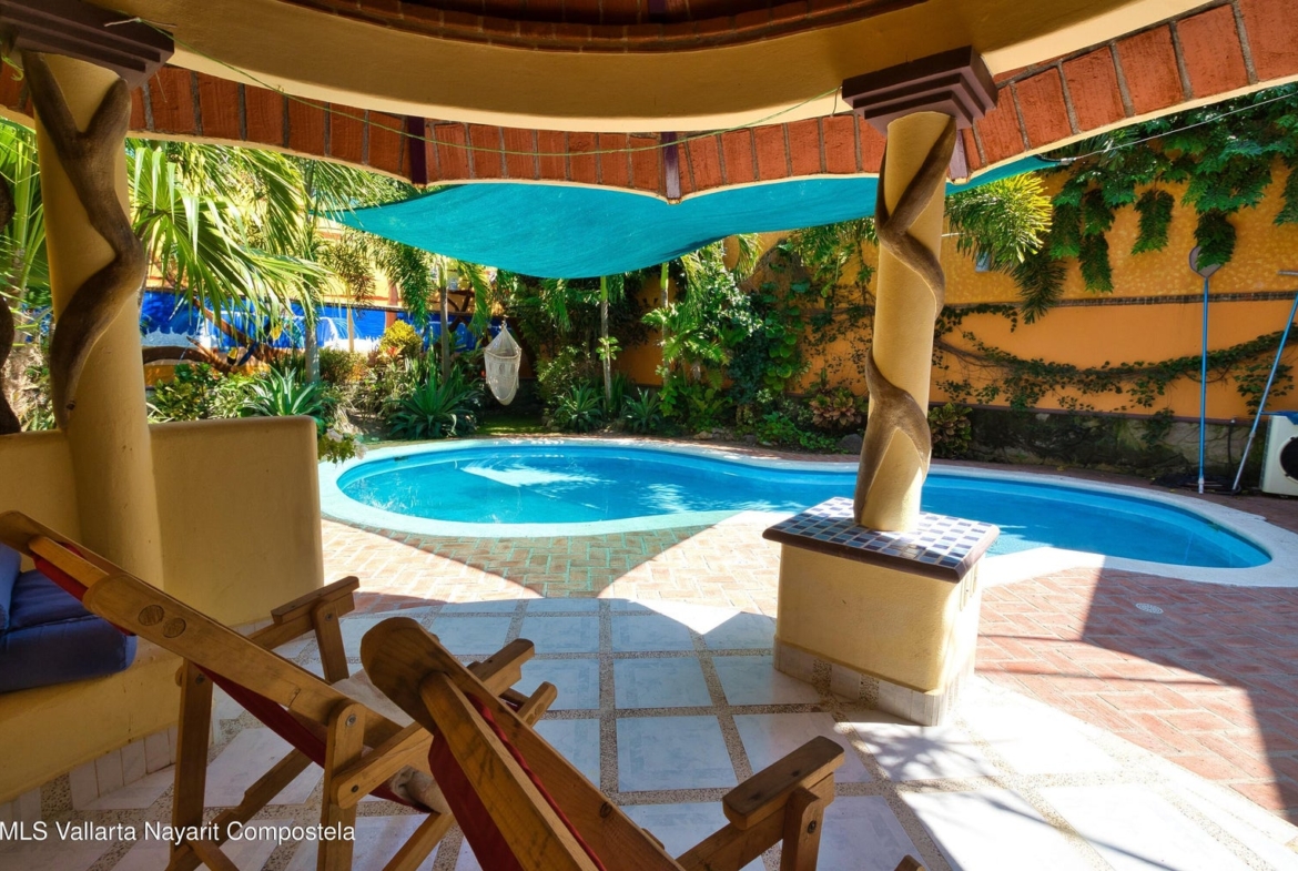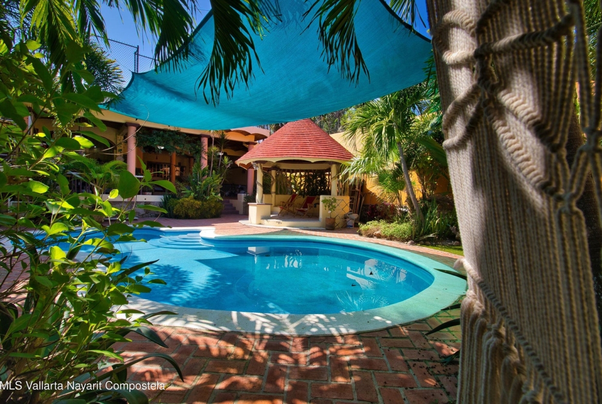 que reduce los costos para el funcionamiento completo de esta casa. Un trastero independiente alberga dos depósitos de agua de 1100 litros. Esta casa tiene un sistema de filtración de agua UV que proporciona agua potable limpia en toda la casa. La cochera grande tiene espacio para hasta cuatro vehículos. La gran área de techo sellado recientemente impermeabilizado tiene el potencial de construir un dormitorio adicional si se desea. Venga a experimentar esta casa de calidad en una maravillosa ciudad de playa rústica con increíbles playas limpias para nadar y excelentes restaurantes. A una hora de Puerto Vallarta en la nueva autopista. Los pueblos de Sayulita y San Pancho están a poca distancia en automóvil.
